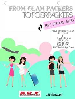 And for those who missed the Sole Sisters’ travel talk and photo exhibit (great pictures by the way!), don’t worry, you still have a chance to see their amazing photos and hear their wonderful stories and insights about travel. There’s two more chances actually. See the details on the poster. 🙂