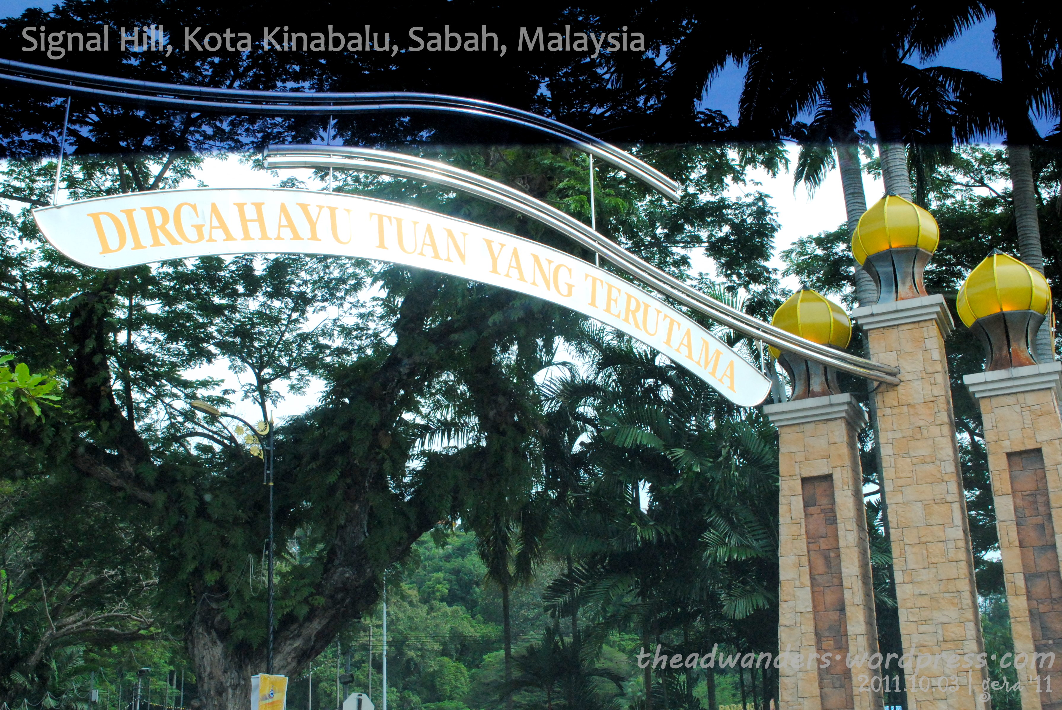 I’m sorry if I can’t tell you how to get to Signal Hill or Atkinson Clock Tower via public transport. The entrance though is marked by an arch with Malaysian words inscribed (kindly give me a translation if you can) and yellow-bulb/headed posts in both ends.