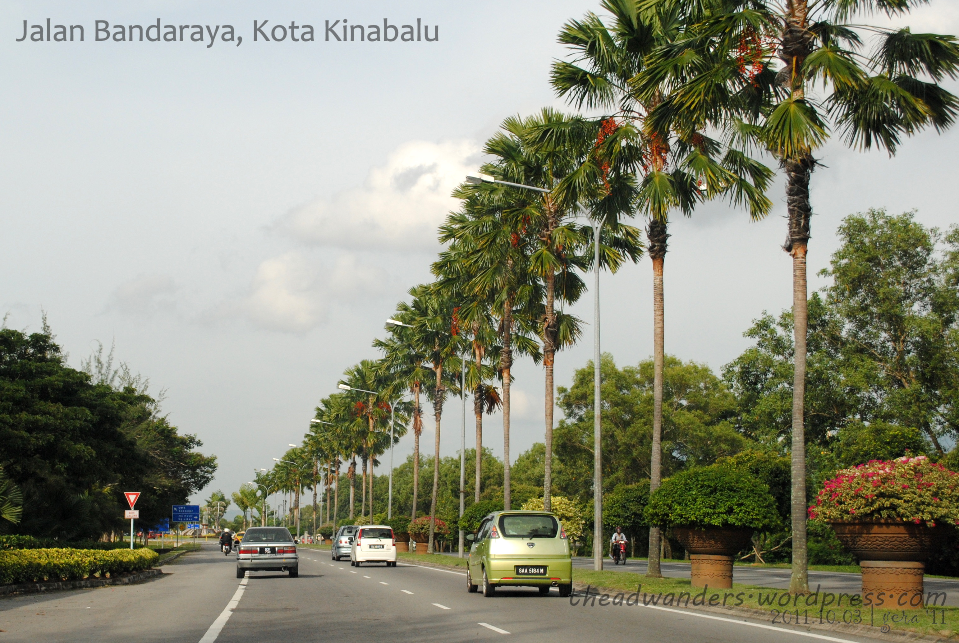 By this time, there was already a bit of a traffic around KK City Center. But you know, their heavy traffic is like moderate traffic along EDSA in Metro Manila. And after getting out of the city area, the Jalan Bandaraya is as free as NLEX. Heading towards this direction, the left side will be the bay and the Masjid can be found on the right, in the way heading back to the city.