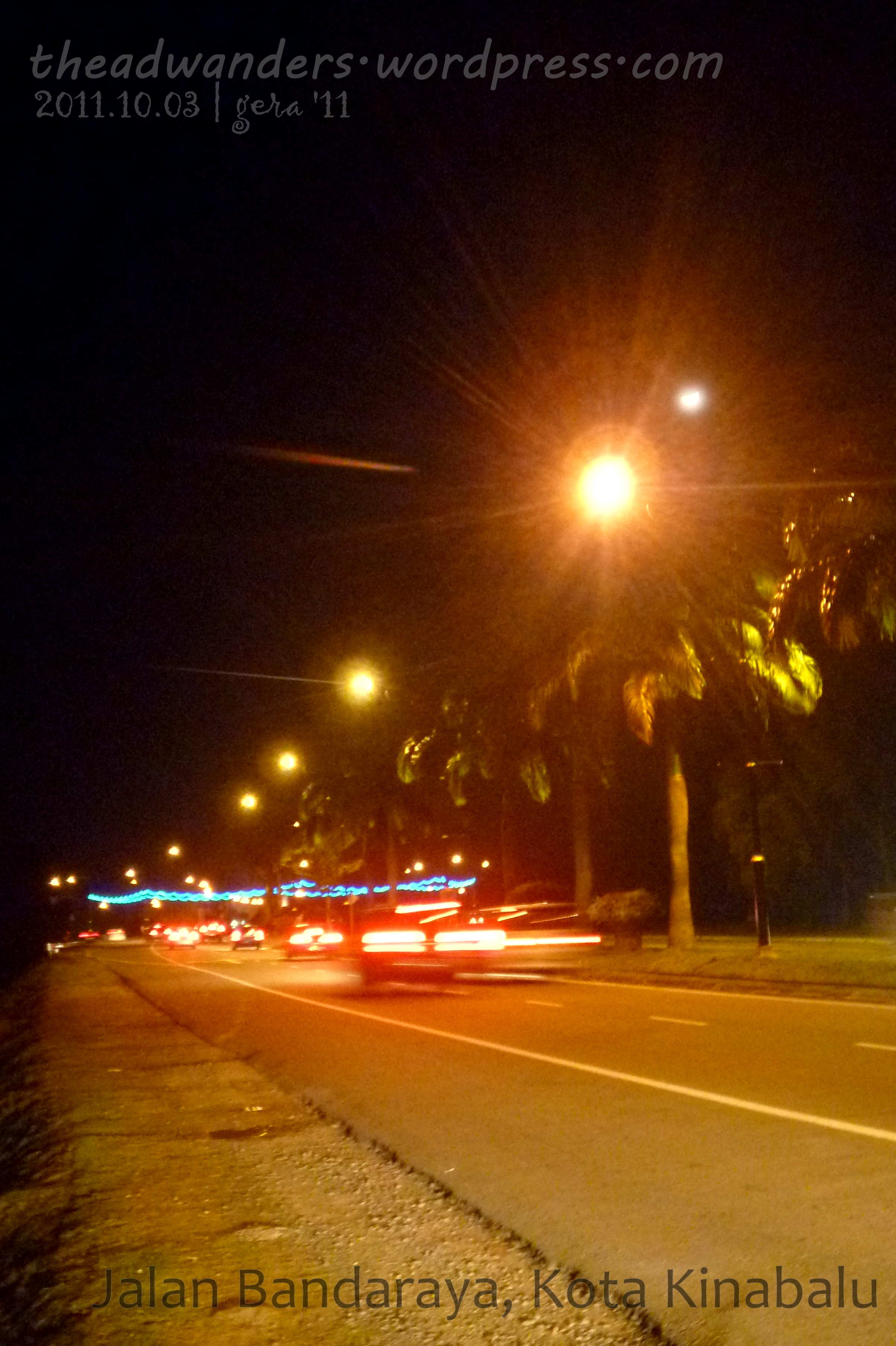 He already called his driver (who’s back at KK City Center) to find a way to pick us up. I wandered around to take photos of the night road. I was taking some more shouts when Zuldee broke into laughter and Sally joined in. When I got there, Zuldee realized that the car he was trying to open IS NOT his car. Stupid, he said. And we all laughed together! I did tell you that the car he drives is quite popular right?!
