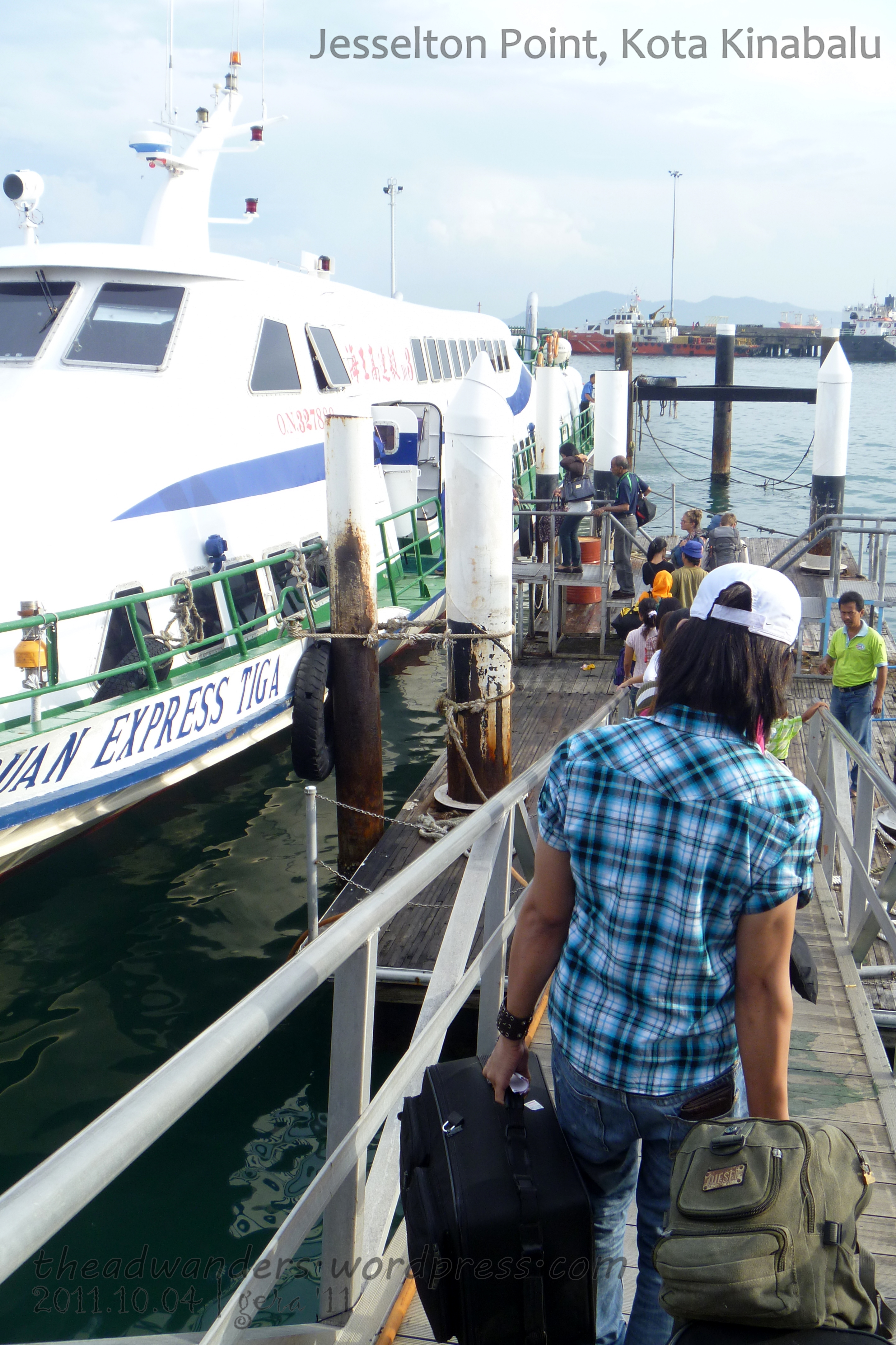 I think they’re kinda nice. 🙂 Nice enough to offer taking my picture with the Kinabalu Express ferry before boarding! 🙂 On the left side of the photo is like a checking area so be ready for your passport, ticket and terminal fee receipt. It’s really not much of a hassle since you already got an exit stamp from Malaysia after clearing with the immigrations officer.