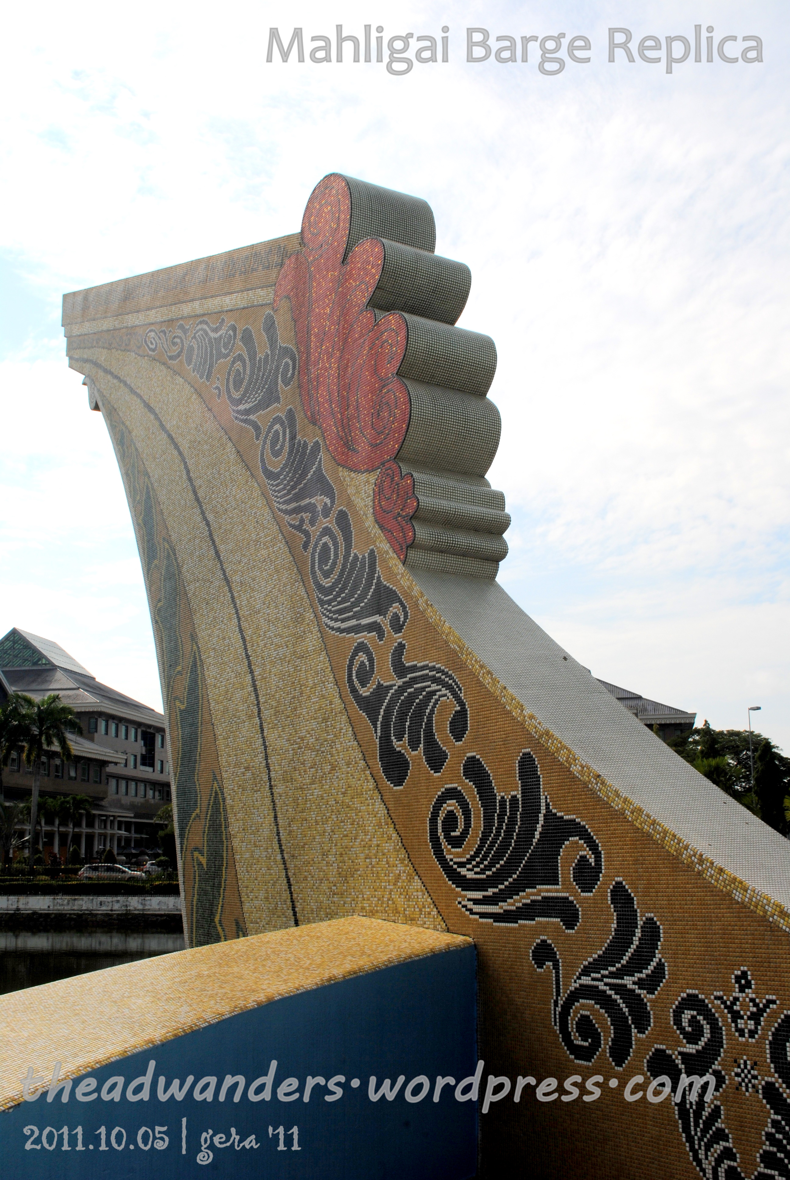 According to Wikipedia (yes, I am citing the site!), the barge was completed in 1967 in commemoration of the 1400th year of the Nuzul Al-Quran (coming down of the Quran). It is used to stage Quran reading competitions. Perhaps it’s done on either side of the barge or at the top of the palanquin-like structure, to give the reader a more commanding presence.