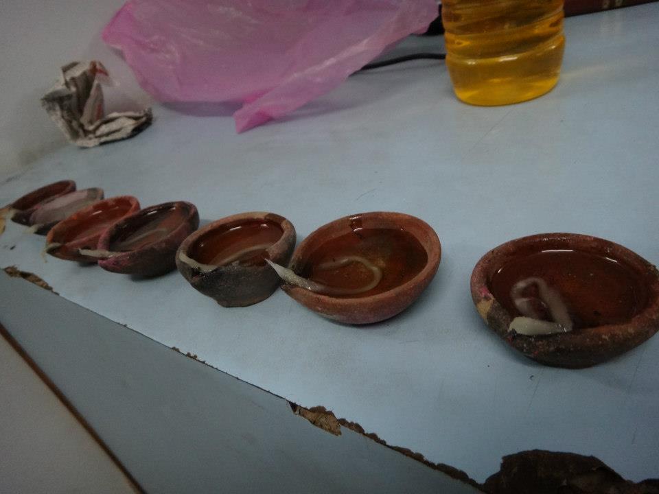 My colleague Ratna was the chief instigator, err, organizer for the simple Diwali celebration at our office. She got this oil lamps. They’re really small!