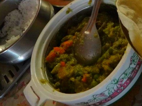 And of course, after all this sightseeing and shopping, our tummies have started complaining and we headed back to the Sharma’s home for another round of traditional South Indian lunch thali! And we ate with our hand, or at least tried to! It’s the best way to enjoy South Indian food! On the menu were Rasam or Saru (in Kannada), a sour (tamarind) soupy dish (lots of radish), cabbage palya (stir fried cabbage with shredded coconut), cucumber pachadi (grated cucumber in yoghurt), and my favorite, papadom (crispy fried/flame grilled pringles-like snack/side dish)! The saagu made a welcomed comeback too! Of course, again, Shantu’s cooking was awesome! I don’t need to state how many servings I had, right?!